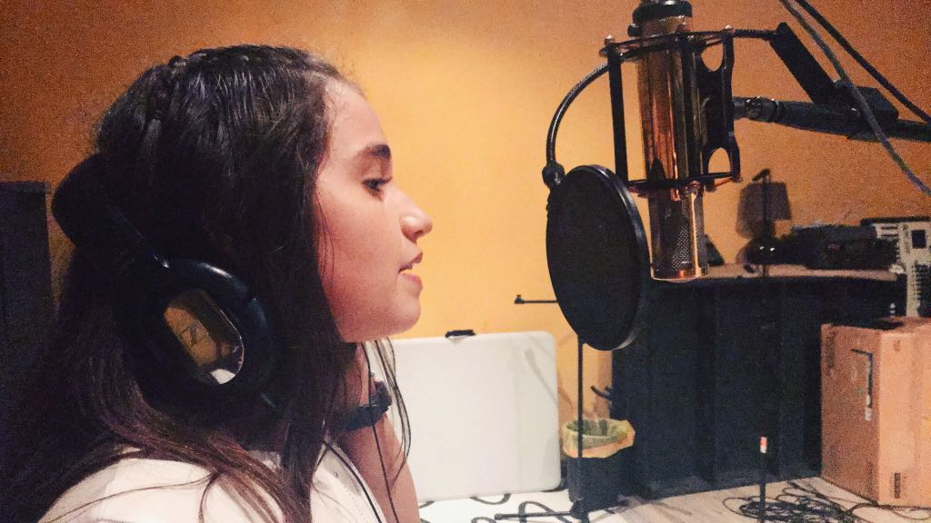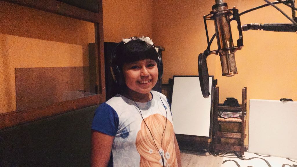 Os dejamos algunas fotos de las más peques grabando en el estudio: